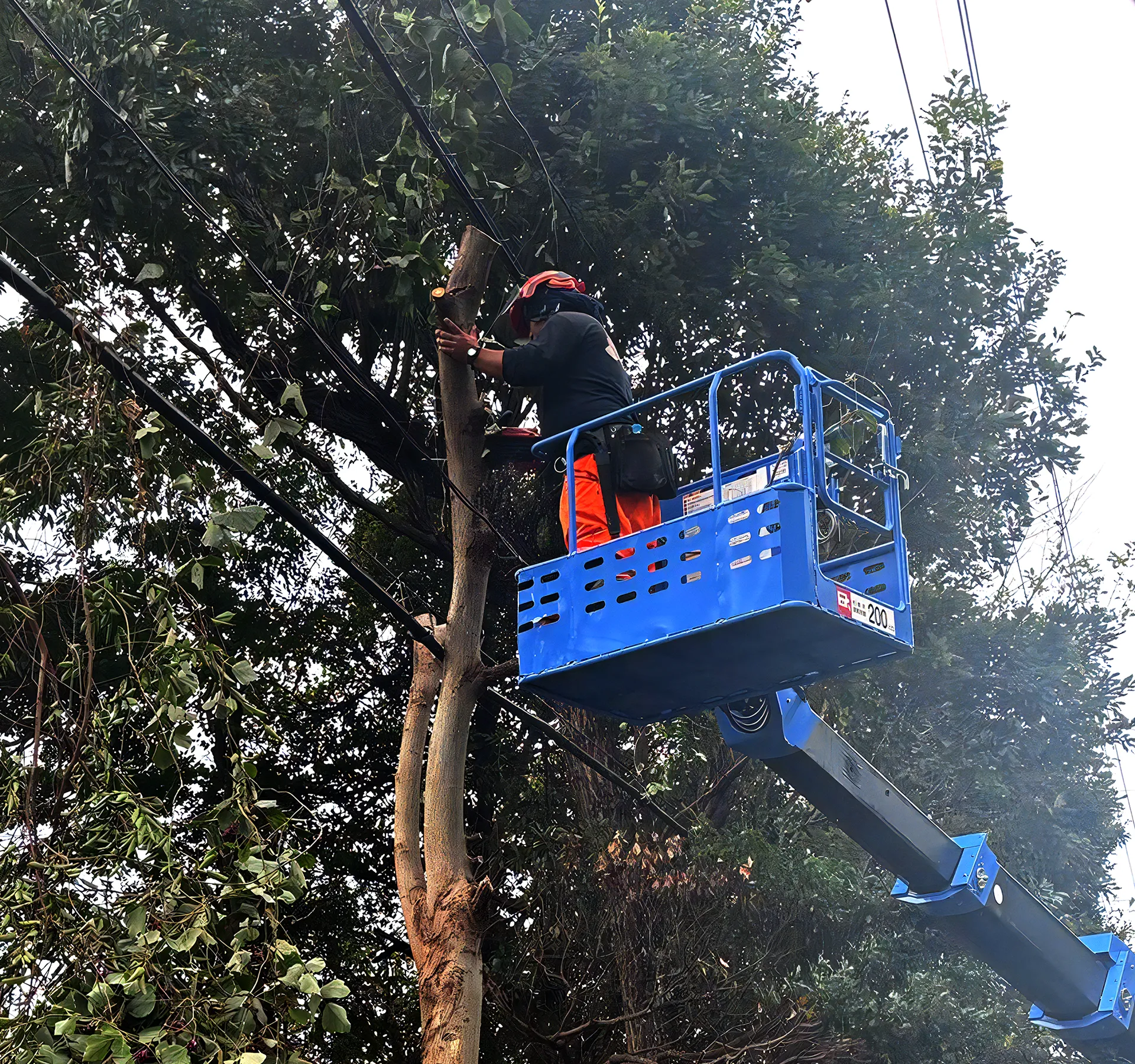 住宅が密集している場所や、電線・建物が近くにある場所では、特殊伐採を行います。