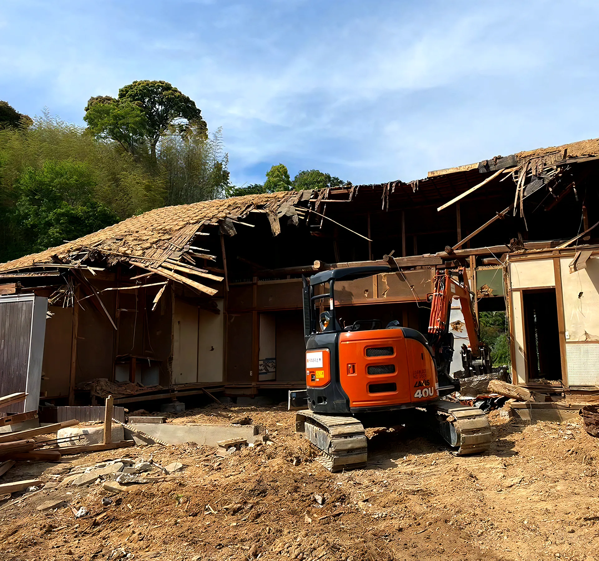 造成工事や伐採・外構工事にともなう解体工事について、ご相談を承っています。産業廃棄物処理までお任せください。建物や構造物の状態を確認し、周辺の状況や今後の土地利用をふまえて進め方を検討します。