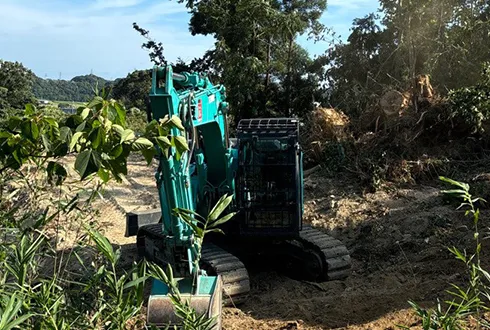 チェーンソーや重機を使って樹木を伐採し、根が残っている場合は伐根作業も行い、その後の工事へスムーズに移行できるようにします。