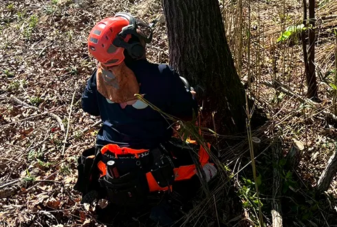 樹木を上から少しずつ切り落とす方法や、ロープで安全に降ろす方法など、周辺環境に合わせた作業を選択します。