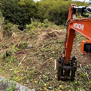 伐採・伐根・特殊伐採に対応しており、造成工事や外構工事にあわせたご依頼はもちろん、伐採のみのご相談も承っています。庭木から山林まで、樹木に関する作業を幅広く行っています。