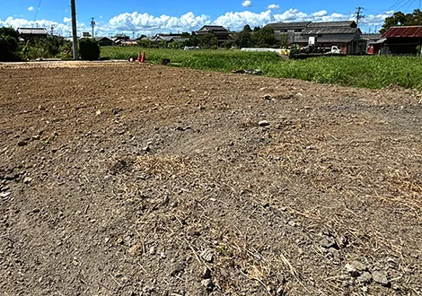 宅地、施設の敷地、駐車場など、目的に応じて土地を使える状態に整えます。高低差がある土地では、重機で土を削る「切土」や、土を入れる「盛土」によって平らにし、設計図に従って形を整えていきます。