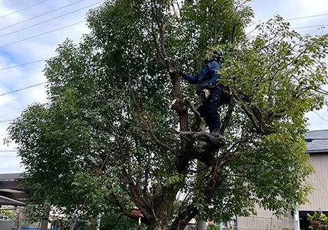 住宅地や電線の近くなど周囲に障害物があったり、通常の伐採では安全性の確保が難しい場所では、特殊伐採の技術を用います。樹木を上から順に切る方法、ロープで支えながら降ろす方法など、状況に応じて適切な選択をします。