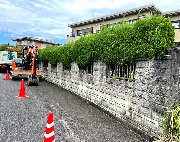 ご相談の段階で現場を確認し、土地の高低差、樹木の有無、既存の構造物、周辺環境などを把握します。そのうえで工事の内容と順序をご提案し、予算や工期についても現実的な範囲でお話しいたします。